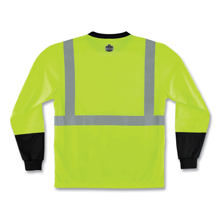 ergodyne GloWear 8291BK Type R Class 2 Black Front Long Sleeve T-Shirt, Polyester, 2X-Large, Lime (EGO22706)
