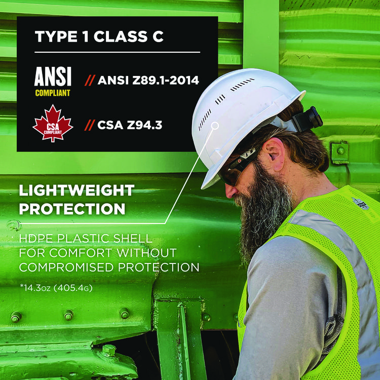 ergodyne Skullerz 8975 Class C Safety Helmet, 6-Point Ratchet Suspension, White (EGO60204)