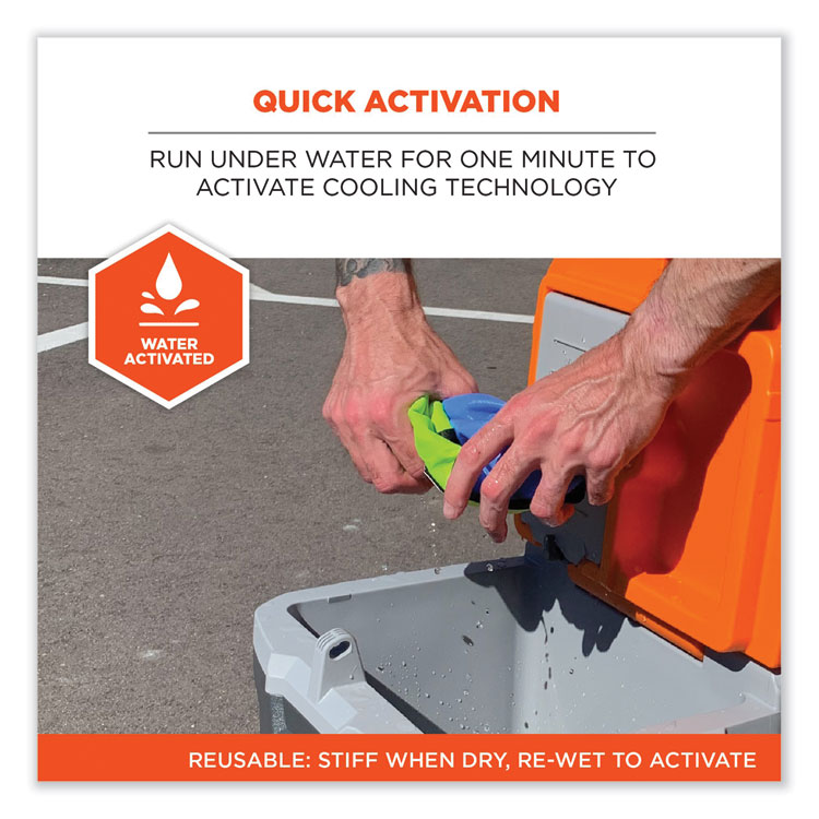 ergodyne Chill-Its 6702 Cooling Embedded Polymers Tie Bandana, One Size Fits Most, Solid Blue (EGO12399)