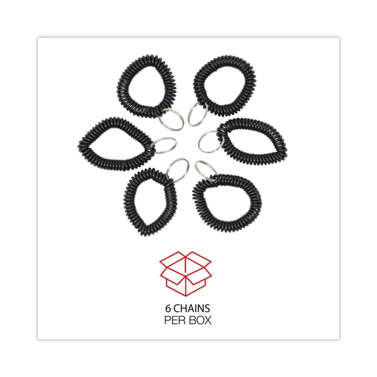 Universal Wrist Coil Plus Key Ring, Plastic, Black, 6/Pack (UNV56050)