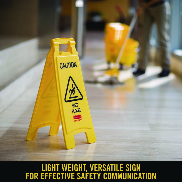 Rubbermaid Commercial Caution Wet Floor Sign, 4-Sided, 12 x 16 x 38, Yellow (RCP611477YEL)