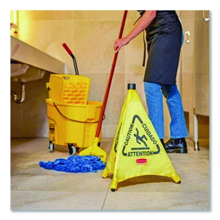 Rubbermaid Commercial Multilingual Pop-Up Wet Floor Safety Cone, 21 x 21 x 30, Yellow (RCP9S0100YL)