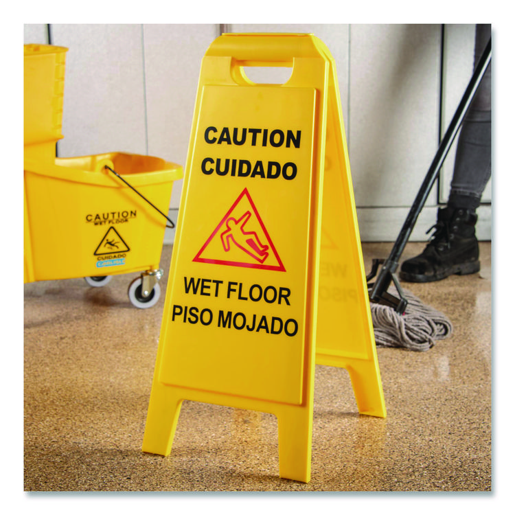 Rubbermaid Commercial Caution Wet Floor Sign, 11 x 12 x 25, Bright Yellow (RCP611277YW)