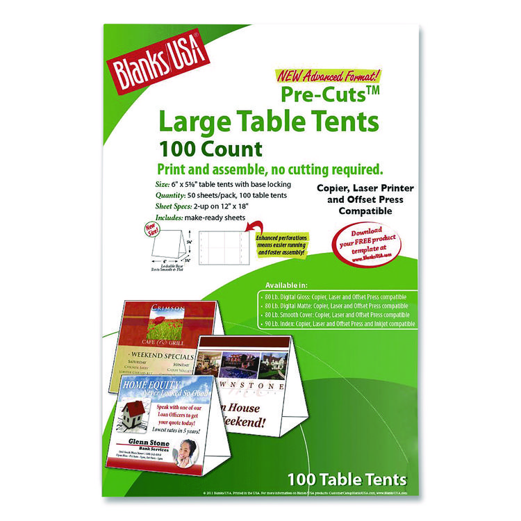 Blanks/USA Table Tent, 80 lb Cover Weight, 12 x 18, White, 2 Tents/Sheet, 50 Sheets/Pack (BLA01FLWH)