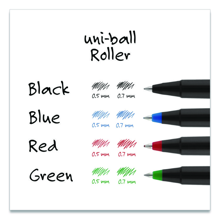 uniball Rollerball Pen, Stick, Extra-Fine 0.5 mm, Blue Ink, Black/Blue Barrel, Dozen (UBC60153)
