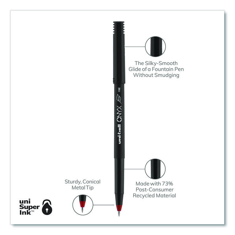 uniball ONYX Rollerball Pen, Stick, Fine 0.7 mm, Red Ink, Black/Red Barrel, Dozen (UBC60144)