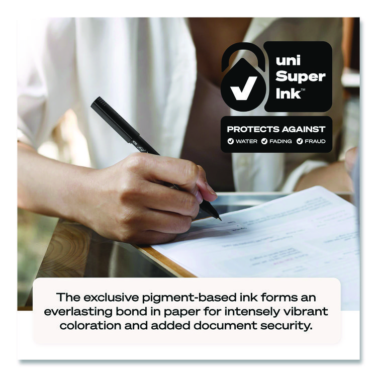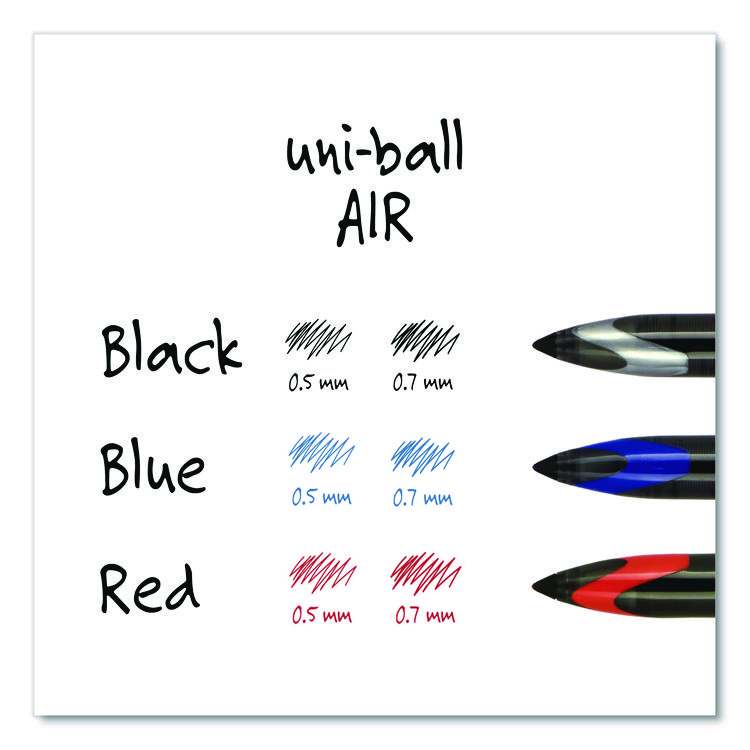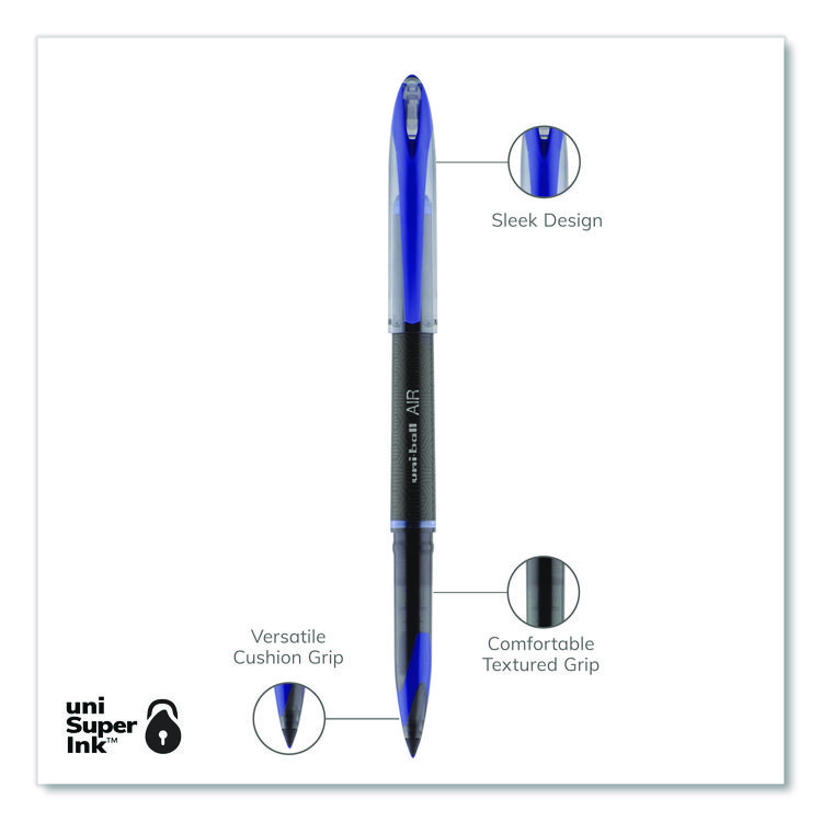 uniball AIR Porous Rollerball Pen, Stick, Medium 0.7 mm, Blue Ink, Black/Blue Barrel, Dozen (UBC1927701)
