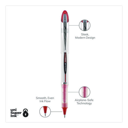 uniball VISION ELITE Hybrid Gel Pen, Stick, Bold 0.8 mm, Red Ink, White/Red/Clear Barrel (UBC69023)