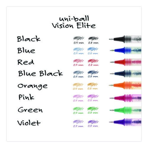 uniball VISION Rollerball Pen, Stick, Bold 1 mm, Blue Ink, Black/Blue/Clear Barrel, Dozen (UBC70129)