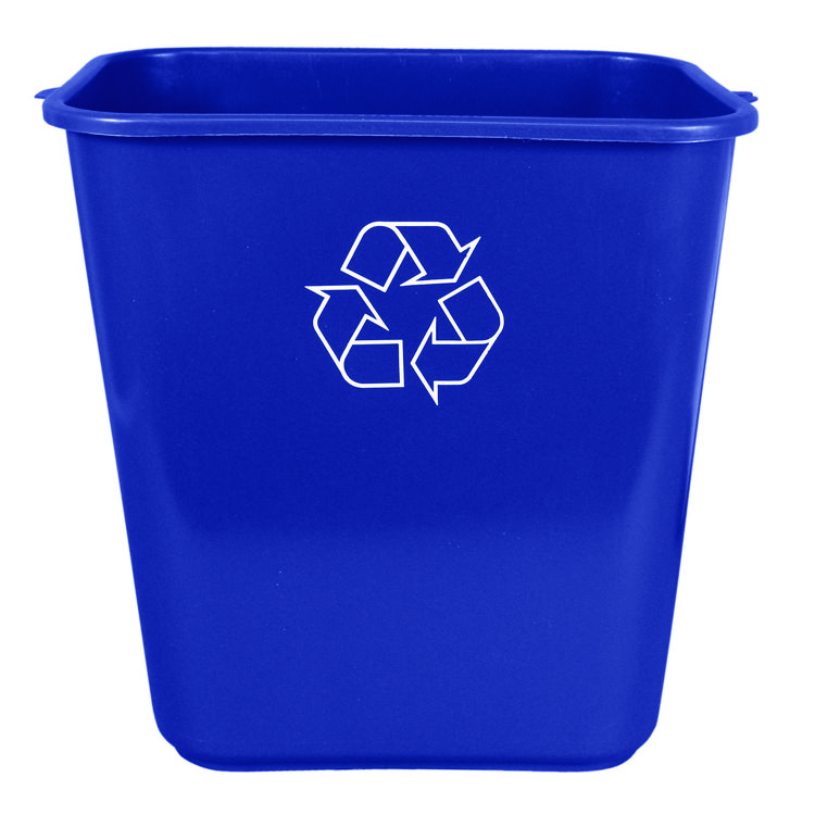 Impact Soft-Sided Recycle Logo Plastic Wastebasket, 28 qt, Polyethylene, Blue (IMP7702BLUR)