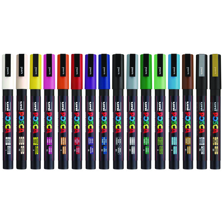 POSCA Water-Based Paint Markers, Fine Bullet Tip, Assorted Colors,16/Pack (UBCPC3M16C)