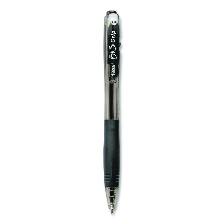 BIC GLIDE Ballpoint Pen, Retractable, Medium 1 mm, Black Ink, Smoke/Black Barrel, Dozen (BICVCG11BK)