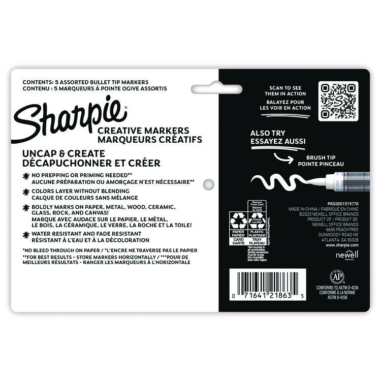 Sharpie Creative Markers, Medium Bullet Tip, Assorted Colors, 5/Pack (SAN2196902)