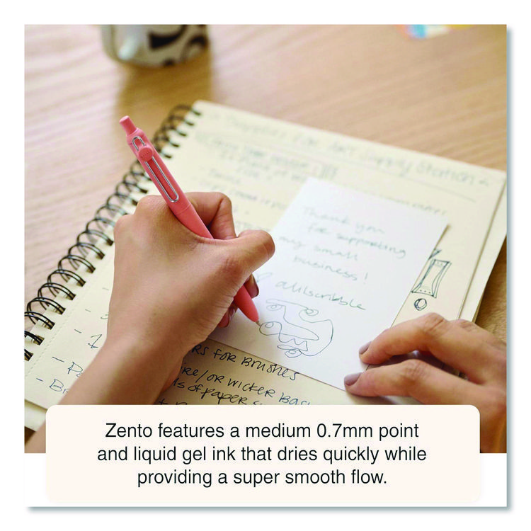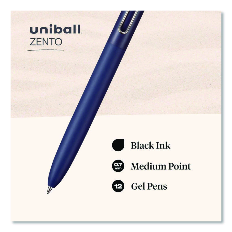 uniball Zento Gel Pen, Retractable, Medium 0.7 mm, Black Ink, Assorted Barrel Colors, Dozen (UBC70663)