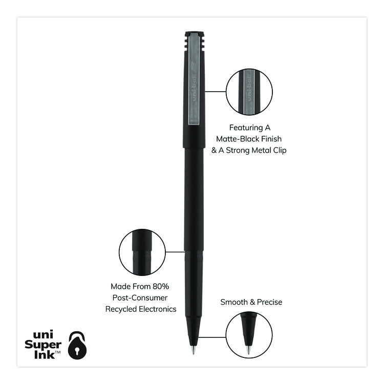 uniball Rollerball Pen, Stick, Extra-Fine 0.5 mm, Black Ink, Black Barrel, Dozen (UBC60151)