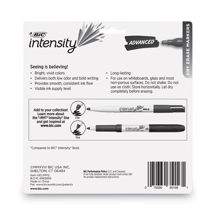 BIC Intensity Advanced Dry Erase Marker, Pocket-Style, Medium Bullet Tip, Assorted Colors, Dozen (BICGELIPP121AST)