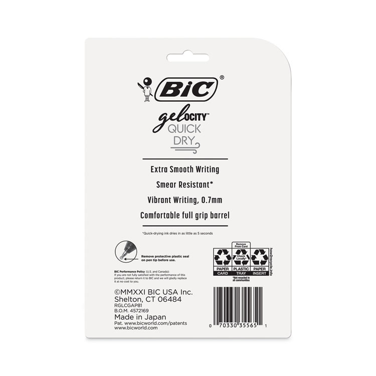 BIC Gel-ocity Quick Dry Gel Pen, Retractable, Medium 0.7 mm, Black Ink, Black Barrel, Dozen (BICRGLCG11BK)