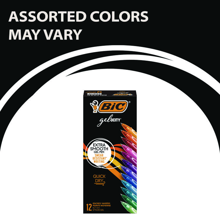 BIC Gel-ocity Quick Dry Gel Pen, Retractable, Fine 0.7 mm, Assorted Ink and Barrel Colors, Dozen (BICRGLCG11AST)