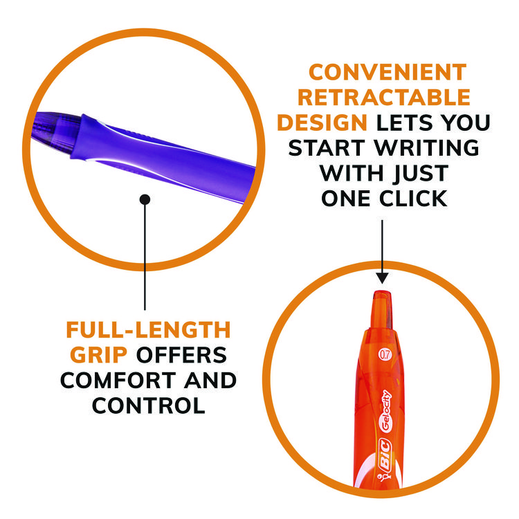 BIC Gel-ocity Quick Dry Gel Pen, Retractable, Fine 0.7 mm, Assorted Ink and Barrel Colors, Dozen (BICRGLCGA11AST)