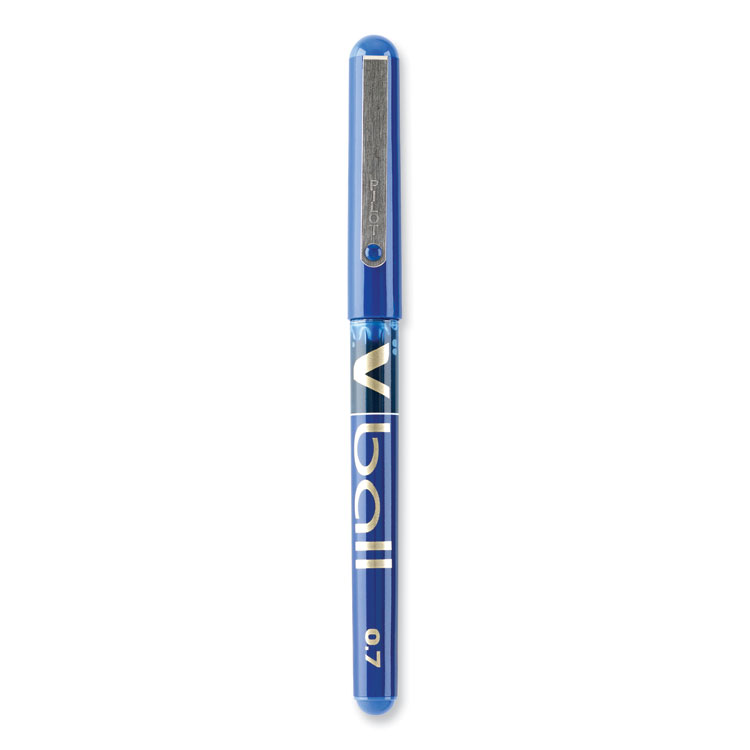 Pilot VBall Liquid Ink Rollerball Pen, Stick, Fine 0.7 mm, Blue Ink, Blue/Clear Barrel, Dozen (PIL35113)