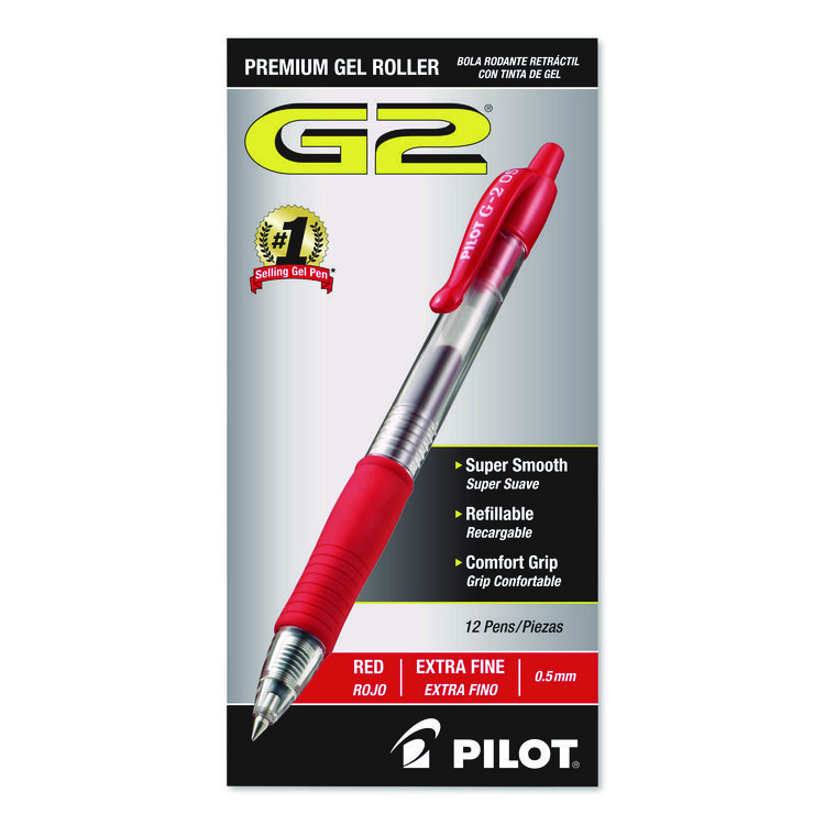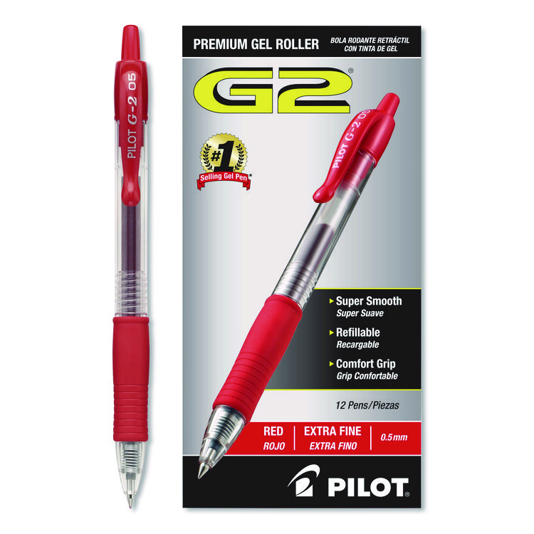 Pilot G2 Premium Gel Pen, Retractable, Extra-Fine 0.5 mm, Red Ink, Smoke/Red Barrel, Dozen (PIL31004)