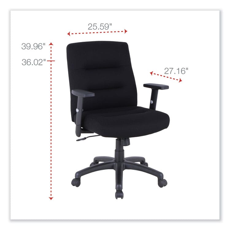 The Alera Kesson Series Petite Office Chair is made for smaller users, offering great comfort and support. It has a molded foam back and seat for long-lasting comfort, plus padded, adjustable armrests for extra support. The chair also has a swivel/tilt mechanism to adjust easily. Perfect for executive and management offices, it supports up to 300 lbs and lets you adjust the seat height from 17.71″ to 21.65″.