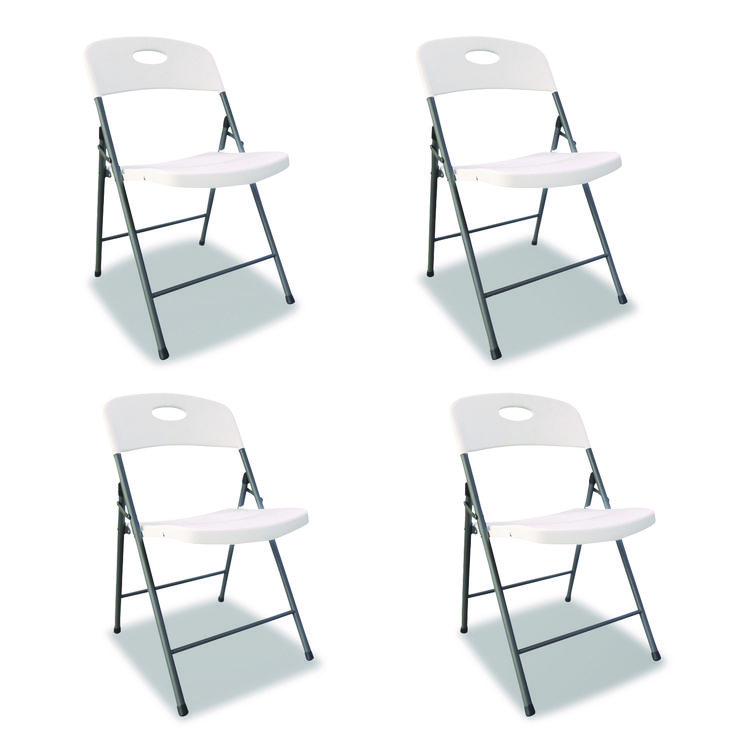 Alera Molded Resin Folding Chair, Supports Up to 225 lb, 18.19″ Seat Height, White Seat, White Back, Dark Gray Base, 4/Carton (ALEFR9402)