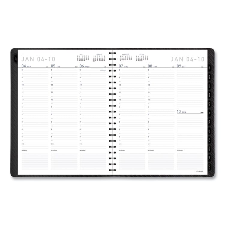 - Unique planner features a professional, contemporary design that’s perfect for long-term planning and staying on track the whole year through. Two-page per week spreads feature reference calendars, plenty of space for your daily appointments and notes as well as a devoted section for each day’s top priorities. Tabbed one-month per two-page spreads feature unruled daily blocks, reference calendars as well as a ruled column for the month’s most important goals and tasks. In the back of the book, you’ll find space for additional notes, important contact information, future planning and more. All federal holidays are highlighted, and all sections are printed on premium paper to ensure excellent ink-bleed resistance.