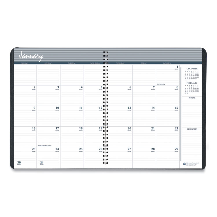 - Featuring a unique, undated, one day per page format with a dated, two-year reference calendar along the bottom of every two pages, these books are ideal for a variety of tasks. Flexible cover with geometric artwork, snag-free twin-wire binding and a bungee closure attractively keep everything together. Printed on high-quality paper for superior ink-bleed resistance.