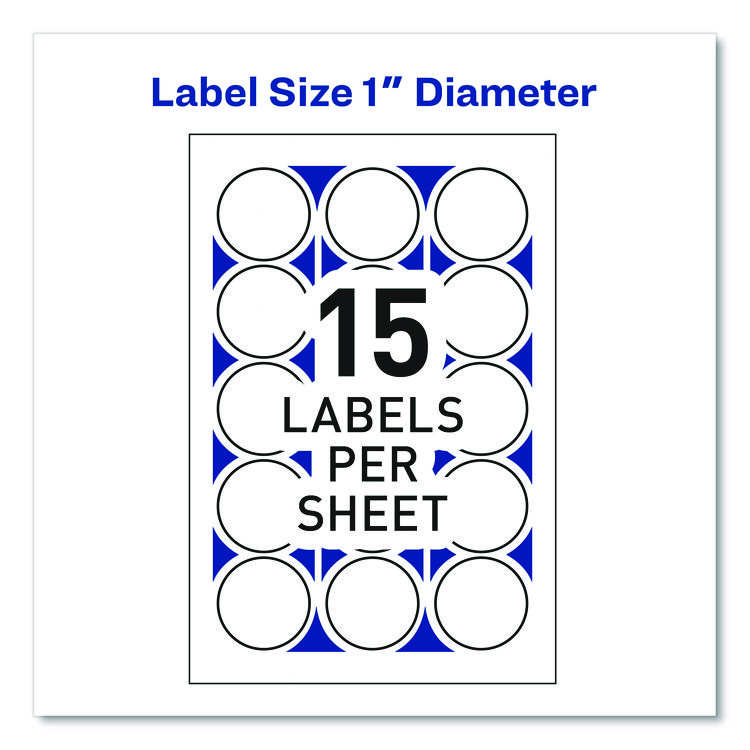 Avery Removable Multi-Use Labels, Inkjet/Laser Printers, 1″ dia, White, 63/Sheet, 15 Sheets/Pack (AVE6450)