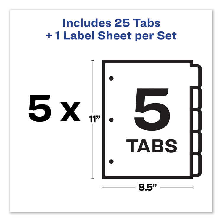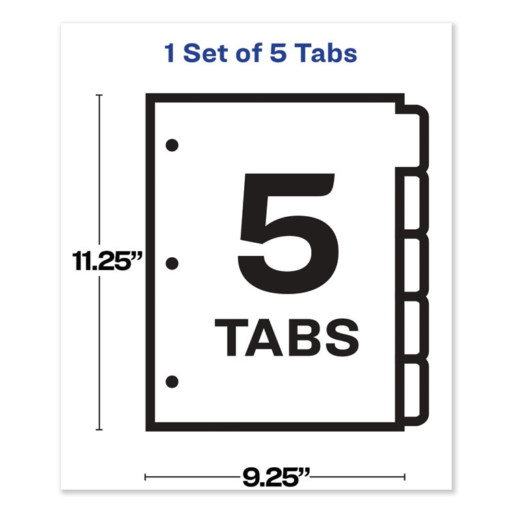 - Big Tab dividers are bigger providing 50% more writing space than standard tabs. Special tab design allows easy insertion and removal, but keeps insert securely in place. Reinforced binding edge. White or buff paper dividers with clear or multicolor insertable tabs. It’s easy to customize inserts using free templates from Avery Design & Print. Three-hole punched for use in standard ring binders, mini size 5.5 x 8.5 dividers are seven-hole punched for small binders and organizers, and legal size are 4-hole punched for legal size binders. Handwrite or print inserts on laser and inkjet printers.