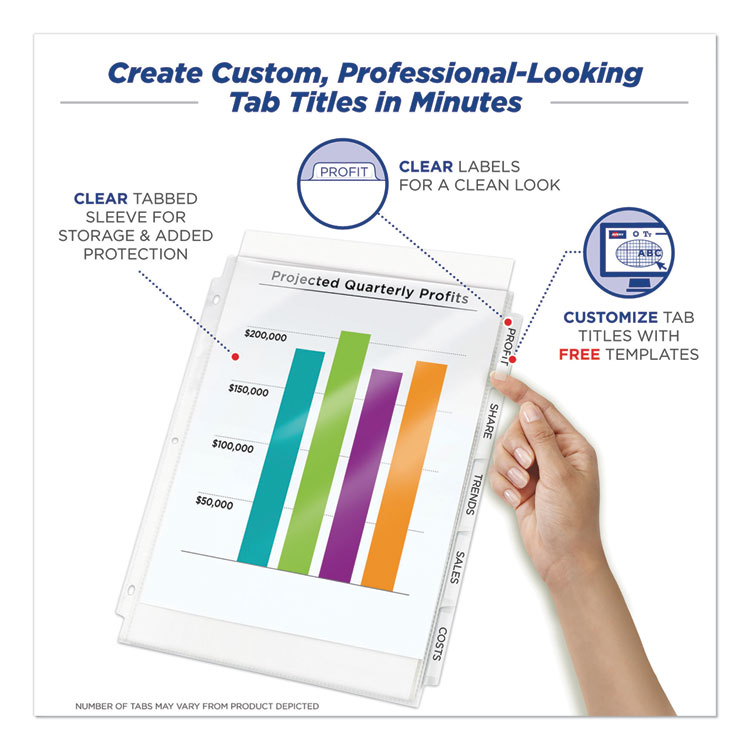 - Tabs provide 50% more writing space than standard tabs. Tab design allows easy insertion and removal, but keeps insert securely in place. Reinforced binding edge. Easily customize inserts using free templates from Avery Design & Print. Handwrite or print inserts on laser and inkjet printers.