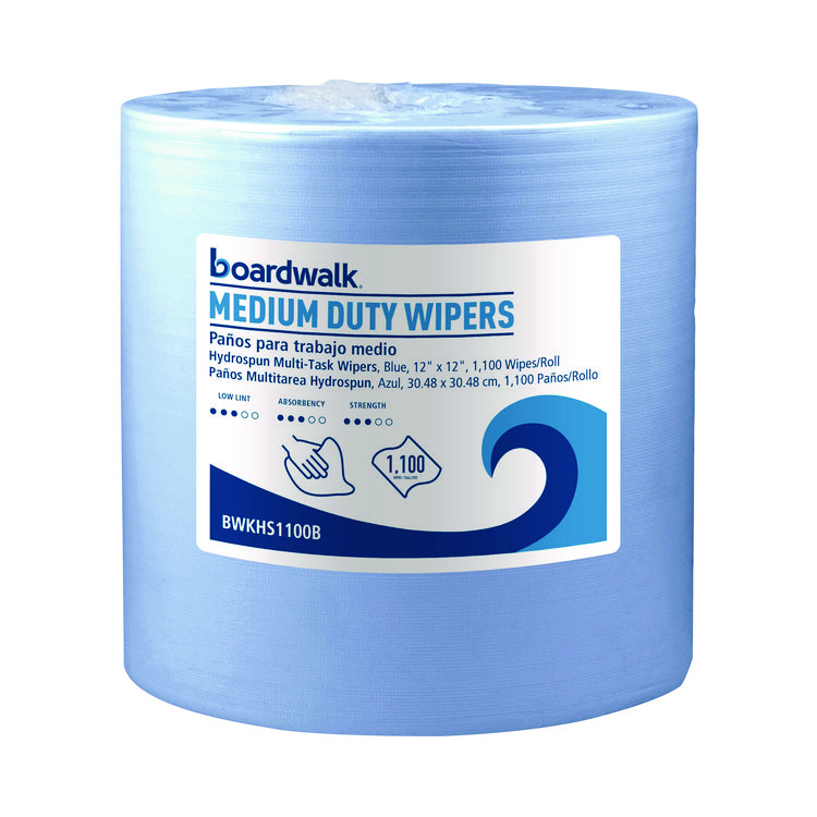 Boardwalk Hydrospun Wipers, Medium Duty, 12 x 12, Blue, 1,100/Roll (BWKHS1100B)