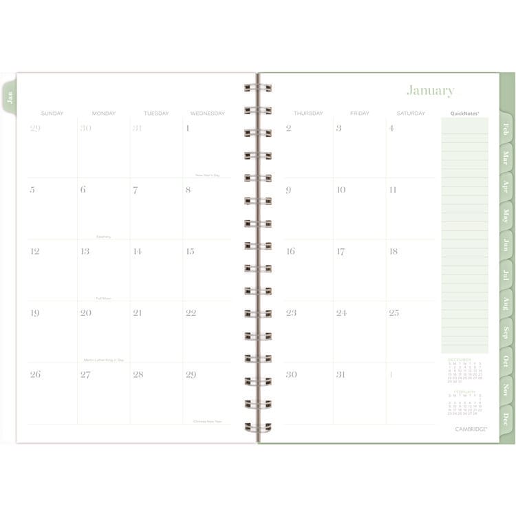 The Cambridge Ombre Weekly/Monthly Planner helps you stay on top of your schedule this year with its colorful ombre design. It makes tracking family events and work deadlines easy. Each week features sections for each day and a QuickNotes area for extra reminders. The tabbed monthly spreads let you see your plans at a glance. You’ll also find extra planning pages, note pages, reference calendars, and stickers for important notes. The strong poly cover and twin-wire binding keep your planner secure and durable all year long.