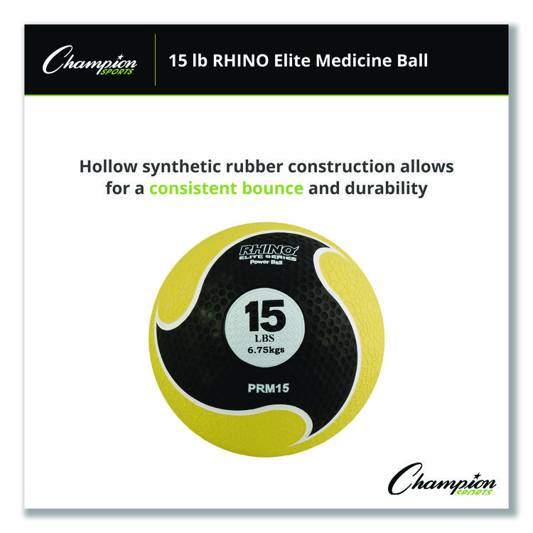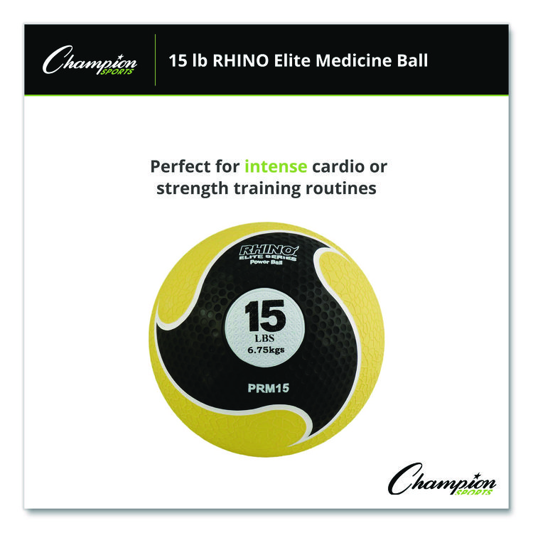 - Get an intense workout with the Champion Sports Rhino® Promax Medicine Ball. Use it for throwing, catching and more while exercising to improve strength and cardio. This softshell medicine ball features a synthetic leather cover for added comfort and grip. The Rhino® Skin shell offers exceptional durability to withstand extreme workout routines without ever losing its shape or weight balance.