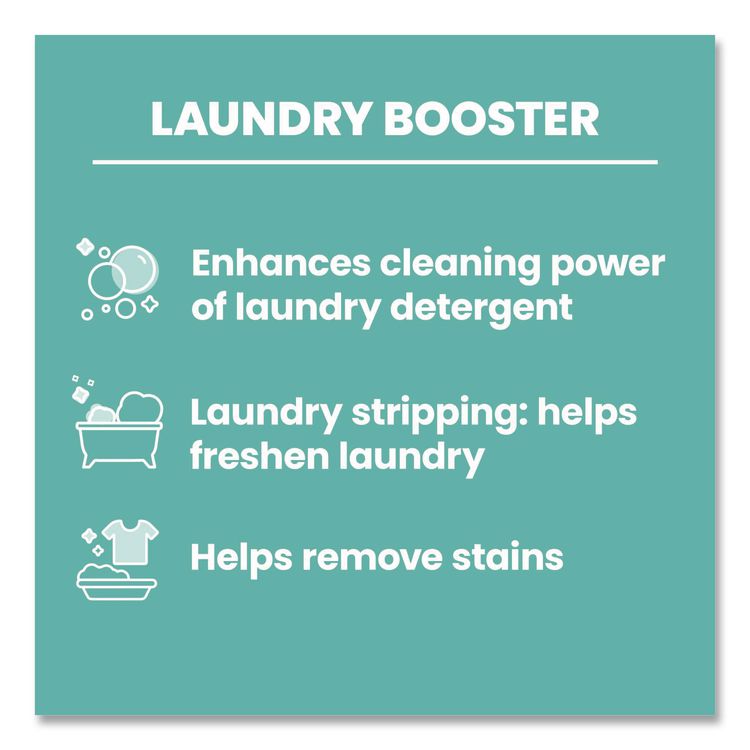 - Everyone needs a boost now and then, including your laundry detergent – this convenient booster increases the effectiveness of all brands of laundry detergent and makes every cup more powerful – simply add half a cup at the same time as detergent. Inhibits certain enzymes from producing odor and controls odors in smelly clothes. Detergent booster inhibits the activity of enzymes that feed on residual urea and prevent odors in baby clothes, bedding, sleepwear, and diapers. 100% natural, with no phosphates or harsh chlorines. Safe for all machines and HE compatible. Use it to neutralize extreme odors and stains, like urine and spilled milk. Excellent for cleaning and deodorizing your refrigerator. Also great for cleaning and deodorizing toilet bowls.