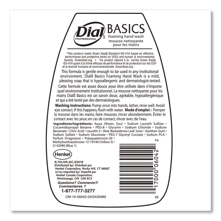 Dial Professional Basics Hypoallergenic Foaming Hand Wash, Honeysuckle Scent, 7.5 oz, 8/Carton (DIA06042CT)