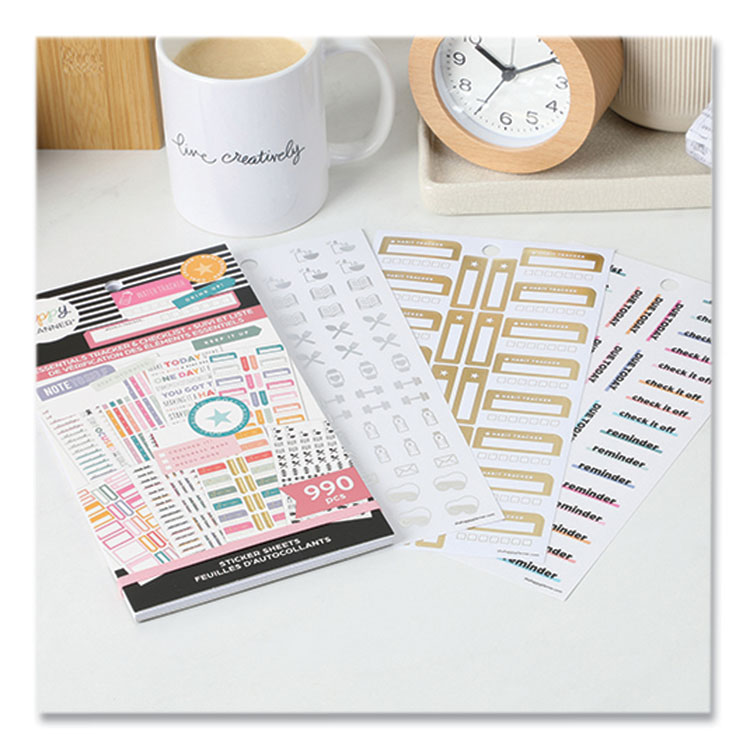 The Happy Planner Essentials Tracker and Checklist Classic Stickers, Assorted Sizes and Colors, 990/Pack (THLSVP130151)