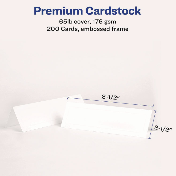 Avery Medium Embossed Tent Cards, White, 8.5 x 2.5, 2 Cards/Sheet, 50 Sheets/Box (AVE5305)