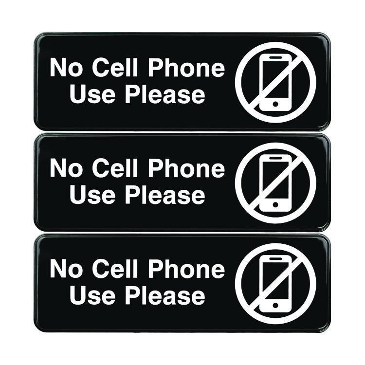 Excello Global Products No Cell Phone Use Please Indoor/Outdoor Wall Sign, 9 x 3, Black Face, White Graphics, 3/Pack (EXOEGPHD0266S)