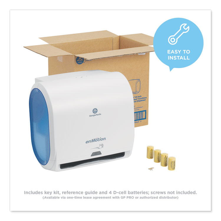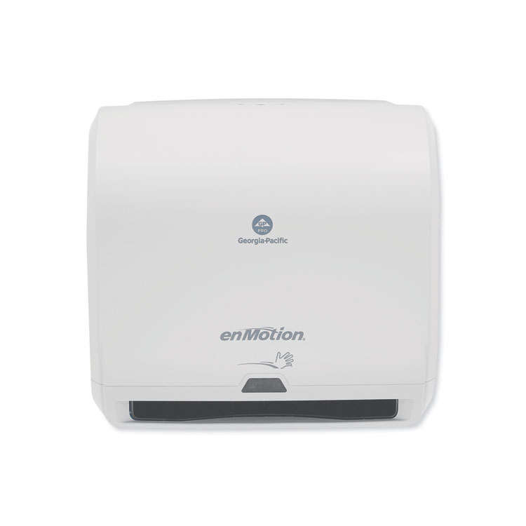 - enMotion paper towel systems combine touchless operation with jam-free performance for state-of-the-art dispensing. Whisper Quiet™ dispensing and sleek design provide a premium experience, while easy customizable settings, including delay, sheet length and dispense mode, let you program the dispensers to meet your unique needs, helping reduce waste. One set of batteries dispenses up to 200 rolls, helping reduce the need for maintenance. Designed for use in offices, healthcare, industrial and higher educational facilities, enMotion products deliver 97% customer satisfaction, thanks to their dependability, hygiene and efficiency. GP PRO is a division of Georgia-Pacific Consumer Products. We deliver well-designed, durable and easy-to-maintain professional solutions to meet the handwashing and cleaning needs for a range of business applications.