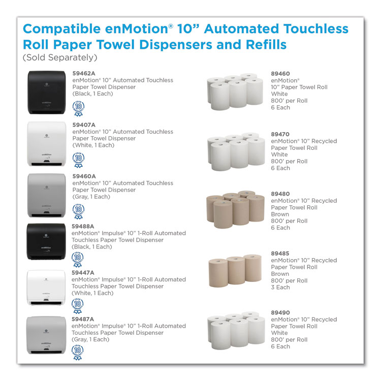 - Compatible with enMotion 10″ paper towel refills 89460, 89470, 89480, 89485 and 89490.