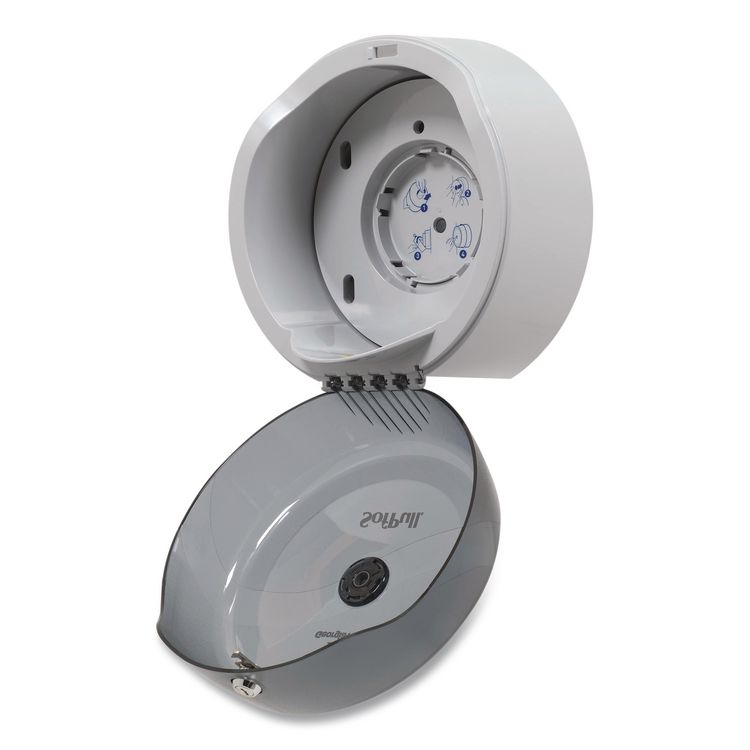 The Georgia Pacific Professional SofPull High-Capacity Tissue Dispenser makes it easy to pull one sheet at a time, helping to reduce waste and improve hygiene. Its large capacity saves money, and the see-through cover shows when it’s time to refill. Made from strong plastic, it’s simple to mount and reload with a hinged cover for quick access. Works well in single, side-by-side, or stacked setups. Size: 10.5 x 6.75 x 10.5 inches; Color: Smoke.