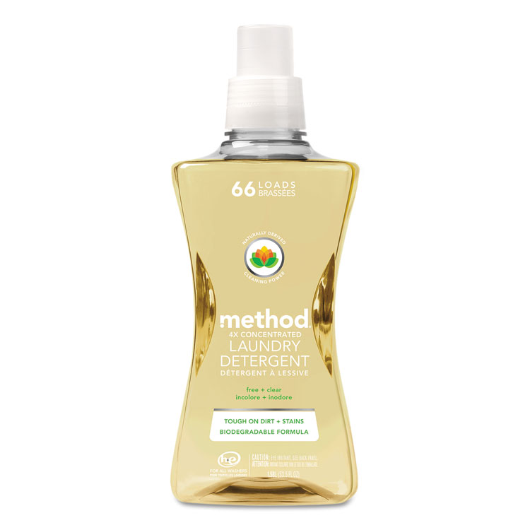 Method 4X Concentrated Laundry Detergent, Free and Clear, 53.5 oz Bottle, 4/Carton (MTH01491)