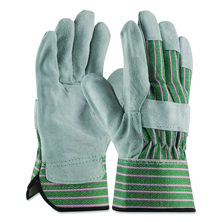 PIP Bronze Series Leather/Fabric Work Gloves, Gunn Cut, Wing Thumb, X-Large (Size 10), Gray/Green, 12 Pairs (PID836563XL)