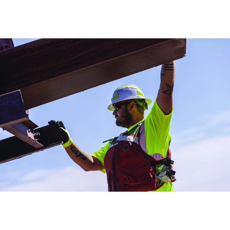 - Premium hard hat provides comfortable protection. Polyethylene shell with ratchet suspension ensures excellent shock absorption while keeping weight down. Self-adjusting crown straps simplify sizing.