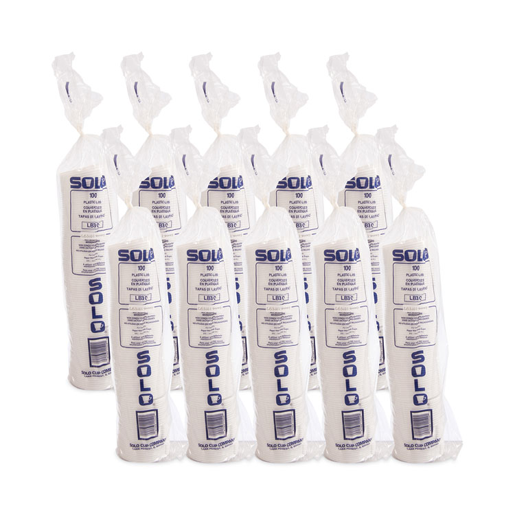 SOLO Lift Back and Lock Tab Lids for Paper Cups, Fits 10 oz Hot Cups, Plastic, White, 100/Sleeve, 10 Sleeves/Carton (SCCLB3101)