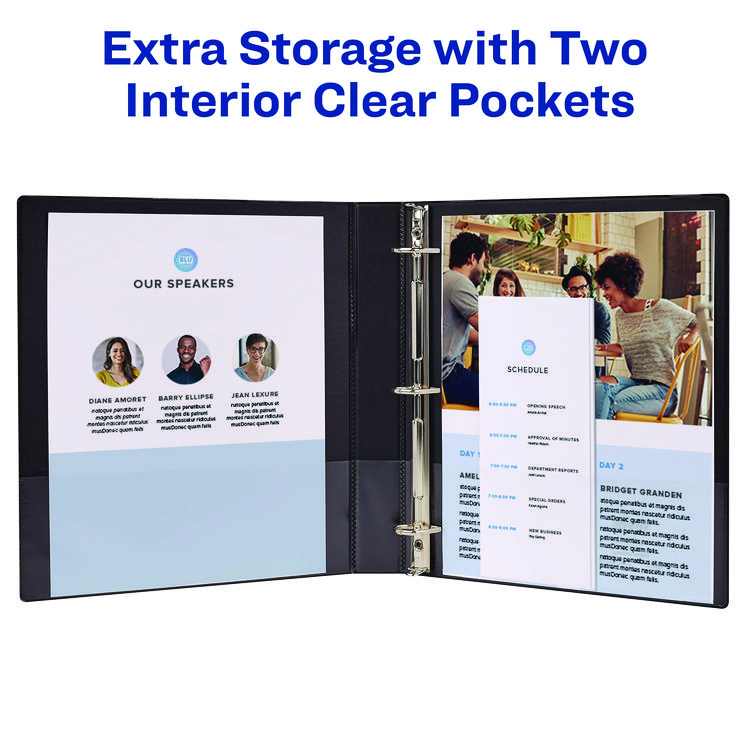 - Features a unique overlay design that allows you to use a single sheet of paper to create a custom one-piece presentation insert that wraps around the spine to the front cover for easy insertion and quick identification. The angled D-rings hold 25 percent more pages than standard round rings of the same size, making the binder ideal where space is at a premium.