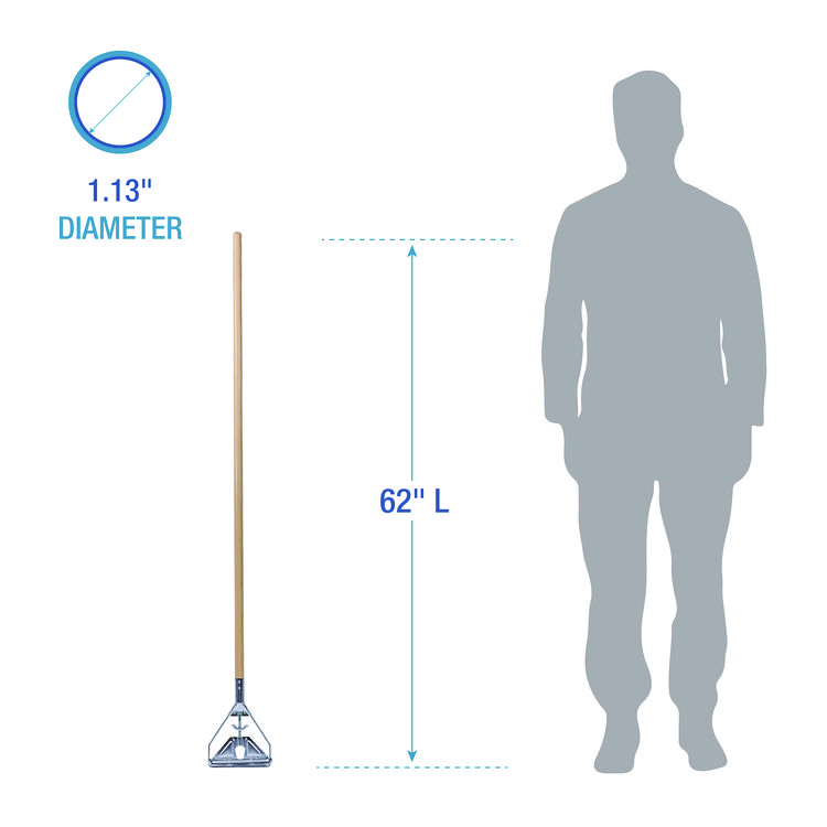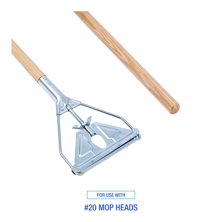 - Make quick work of cleaning with this convenient wet mop handle. Hinged side-latch and adjustment knob provide easy loading of most mop heads. For indoor use.