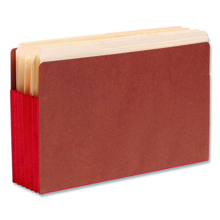 - Manages large files and offers easy access with a drop front. Features double-ply straight cut end tab for label placement or handwritten notes. Reinforced gussets for added durability. Made with recycled materials.